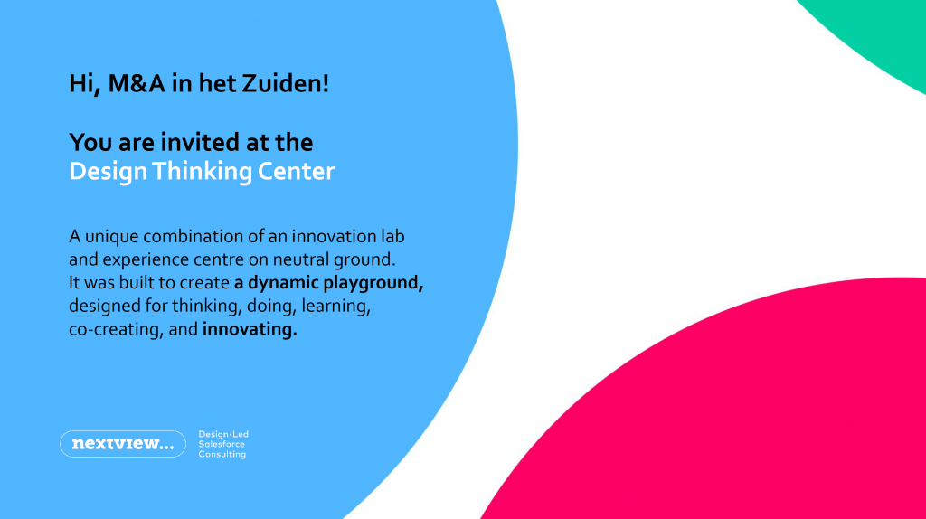 Graag nodigen wij M&A professionals in het Zuiden uit voor het komende event op dinsdag 7 oktober a.s. op de locatie Nextview Consulting – Design Thinking Center in Eindhoven